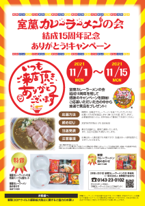 本日11月1日(月)から「室蘭カレーラーメンの会」結成15周年を祝して感謝のキャンペーンを開催します!